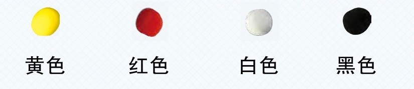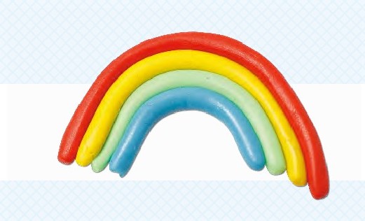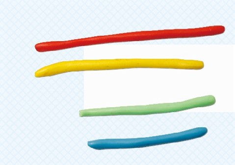 1 取红色、黄色、绿色、蓝色彩泥搓成长短不一的长条形状。