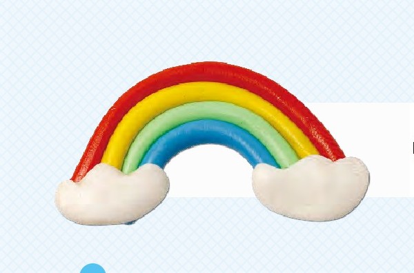 6 用同样的方法再做一个云朵,粘在弧形两边,彩虹就完成了。