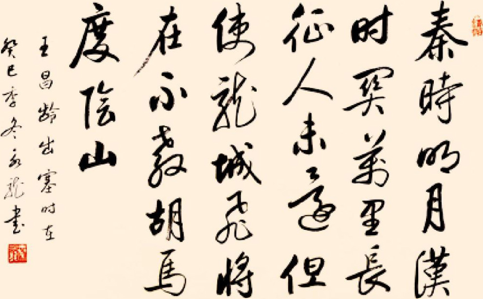 龙城飞将:指代汉代名将李广,他英勇善战,箭法高明,屡次出征匈奴,号称“飞将军”,曾任右北平太守,唐代右北平在卢龙县,所以称“龙城”。