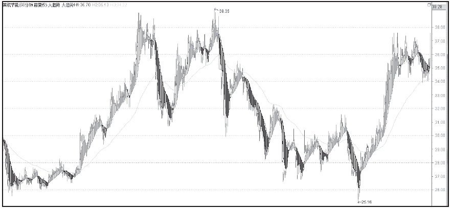 产业资本增持股,投资者可在甄别产业资本增持意图的基础上,关注产业资本溢价增持股和股价低于增持价的机会。例如中国建筑(601668),该公司是中国最大的建筑房地产综合企业集团,是全球最大的住宅工程建造商,具备各类高等级专业资质723个,其中特级资质17个,是中国各类高等级专业资质及特级资质最多的建筑企业集团之一。公司控股股东中建总公司于2011年9月5日增持公司股份2000万股,截止2012年9月4日本次增持计划已实施完毕,累计增持公司股份24766万股,约占公司总股本的0.83%。本次增持计划完成后,中建总公司共持有公司1646897万股,约占公司总股本的54.90%。中建总公司表示在增持计划结束(即2012年9月4日)后,6个月内不减持公司股份。如此举动必然对市场的投资者起到增强信心的作用,两个月之后,即2012年11月30日该股便启动了一波上涨30%的波段行情,大家要清楚这可是流通盘是300亿的大盘股(见图3-11)。