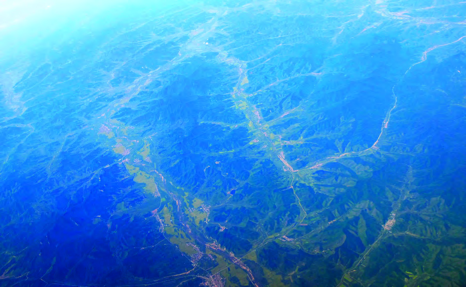 从这张航拍照片上可以清晰地看出辽宁低山丘陵的分布情况,连绵起伏的低山丘陵间分布着河谷,这就是辽宁低山丘陵地貌的基本特征。