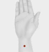 内关穴又名“阴维穴”,位于腕臂内侧,掌长肌腱与桡侧腕屈肌腱之间,腕横纹上2寸处取穴,将一只手中间三指并拢,无名指放在另一手的手腕中间的横纹的中央位置,则食指下方按之凹陷并酸痛处即是该穴。