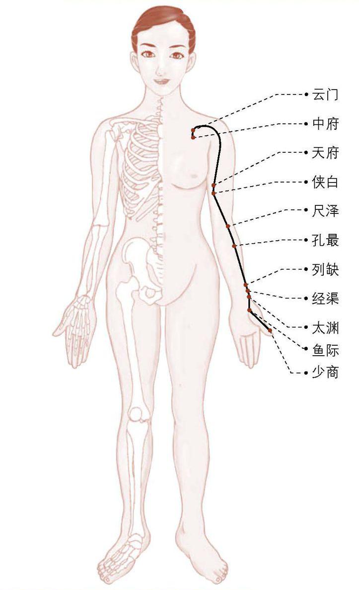 胸闷、感冒、咳嗽、咳痰、喘、咽喉肿痛、颈根部酸痛、上臂至前臂的拇指侧酸痛、麻木、发凉。
