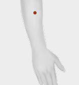 伸臂仰掌取穴,从尺泽穴至腕横纹外侧端脉搏搏动处连线的中点向上约一横指处。