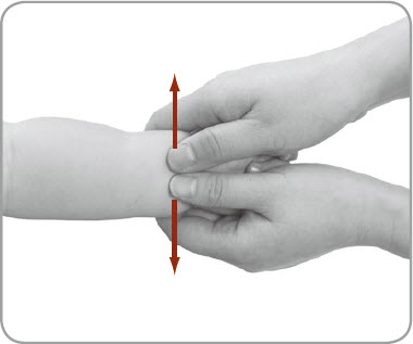 按摩者一手握住小儿手,用另一手拇指或食、中指指腹沿小儿前臂桡侧自腕横纹推向肘横纹50~100次。