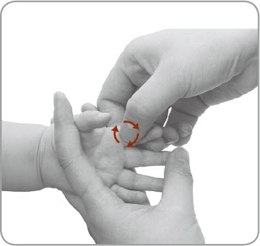 按摩者使小儿掌心向上,以另一手拇指螺纹面自小儿食指根向食指尖端推食指末节掌面螺纹面50~100次。