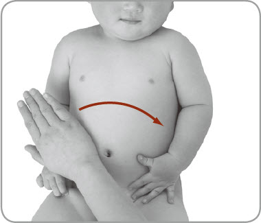按摩者用四指或全掌摩于小儿整个腹部3~5分钟。