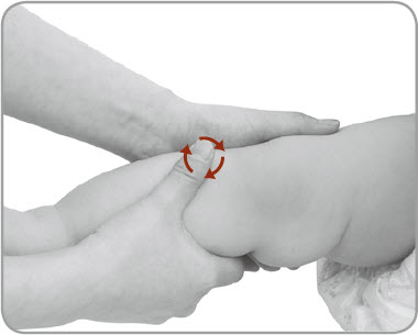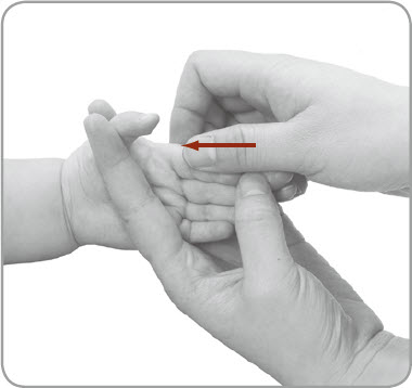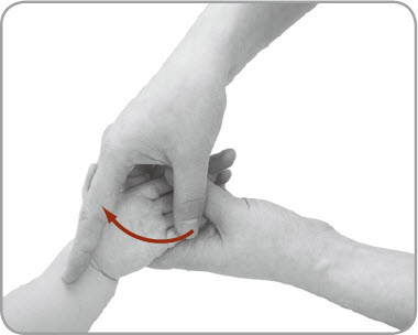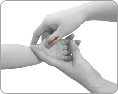 按摩者以拇、食二指固定小儿拇指及其掌指关节,以另一手拇指指腹或桡侧面,自小儿掌根推向拇指根,即推大鱼际外侧缘50~100次。