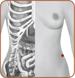 位置:带脉穴位于侧腹部,在第11肋骨游离端下方垂线与脐水平线的交点上,章门穴下方2寸处,左右各有一穴。
