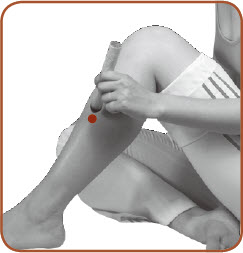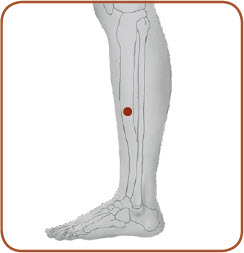 位置:丰隆穴位于脚部外踝尖上8寸,距胫骨前缘2横指宽处,左右脚各有一穴。取穴时,取外踝尖到膝中的中点,然后再沿胫骨外缘取2横指宽处就是丰隆穴。