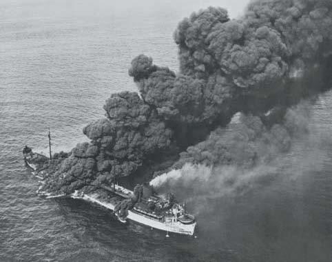 1942年7月15日,在美国佛罗里达州基韦斯特市以西约200千米的海面上,一艘美国油轮被德军U-571潜艇击中,浓烟冲天而起。但是最终这艘油轮幸运地逃过死劫,经过维修后,于次年重新开始服役。