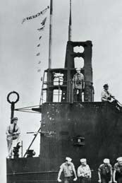 二战中,一艘完成任务后的德国潜艇返回基地。