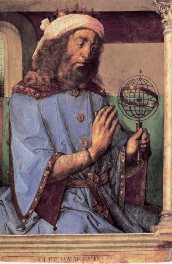 托勒密是一个奇才,他上知天文下知地理,还擅长于光学和占星学。青年时期,他就完成了集古希腊天文学之大成的著作《至大论》。在这部著作中,托勒密继承了亚里士多德的地心说,构筑了影响深远的地心宇宙体系。他认为,宇宙是一个有限的球体,分为天地两层,地球位于宇宙中心,所以日月总是围绕地球运行,物体总是落向地面。在此后一千余年内,这个宇宙体系成为欧洲和阿拉伯天文学普遍遵循的理论基础,它除了符合基督教信仰的因素以外,还较为完满地解释了当时观测到的行星运动情况,在航海中具有实用价值。在书中,托勒密还构造了完备的几何模型,以描述太阳、月亮、五大行星、全天恒星等天体的各种运动。人们能够在任何给定的时间点上,预先推算出各种天体的位置。在那个没有望远镜的年代里,《至大论》无疑是具有进步意义的。在他身后不久,《至大论》就成为古代西方世界学习天文学的标准教材,被奉为西方天文学的“圣经”。可以说在16世纪之前,没有任何西方的星历表不是按托勒密的理论推算出来的。