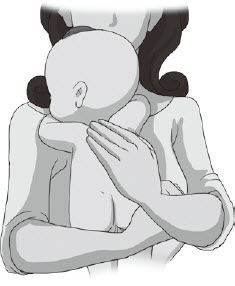 Step 1:抱起宝宝,用手掌弯成铲状,用空掌轻轻拍打宝宝的背部,做1分钟左右。