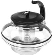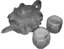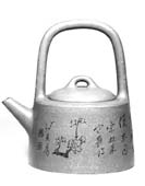 陶器中的茶具精品颇多,其中首推宜兴紫砂茶具。紫砂茶具出现于北宋初年,流行于明代,并逐渐成为独树一帜的精品茶具。紫砂壶采用当地的紫泥、红泥、团山泥抟制焙烧而成,其里外都不敷釉。紫砂壶和一般的陶器有很大的不同,由于成陶火温高,烧结密致,胎质细腻,既不渗漏,又有肉眼看不见的气孔,经久使用,还能汲附茶汁,蕴蓄茶味;且传热不快,不致烫手;若热天盛茶,不易酸馊;即使冷热剧变,也不会破裂;如有必要,甚至还可直接放在炉灶上煨炖。紫砂茶具造型简练大方,色调淳朴古雅。