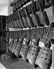 有人曾统计过,如果要同时演奏曾侯乙墓里所有的乐器,起码需要41个人。在出土的所有乐器中,名气最大的则要属那套共65件、总重达到5吨而又完整无缺的青铜编钟组成的庞大乐器,其音域跨五个半八度,十二个半音。这套编钟的挖掘出土可谓是音器史上绝无仅有的一次伟大发现,整套乐器体积庞大,造型独特精致,音色悠扬。它同时也代表了古人高超的金属铸造工艺。当代冶金学证实:编钟优良的音质来自于铅、锡、铜含量的合理配比,尤其锡的含量控制最为关键。乐器制造专家发现当青铜中锡含量在13%左右时,所铸造的乐器才能达到最完美的音色和音高,而这套编钟中锡的含量恰好被严格地控制在了这个范围之内。