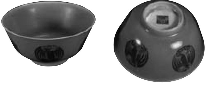 琢器或大型圆器用吹釉法,其法是将竹筒蒙上细纱,蘸釉后用嘴吹喷,如此反复多次,坯面会淋上厚度均匀的釉层。