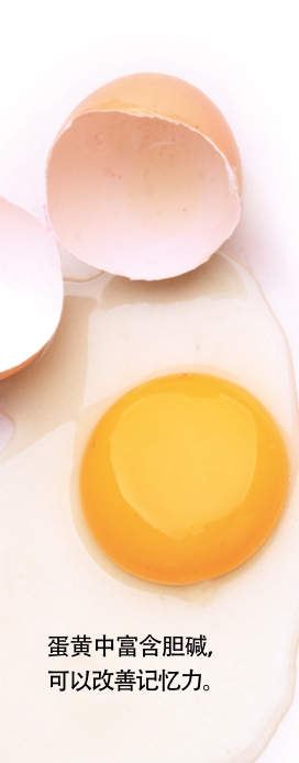 有研究表明,蛋黄中富含记忆素”——胆碱。美国研究者提出:有控制地供给足够的营养胆碱,可以改善不同年龄人群的记忆力。孕妈妈每天食用一两个蛋黄,就能够保证摄入足够的胆碱。