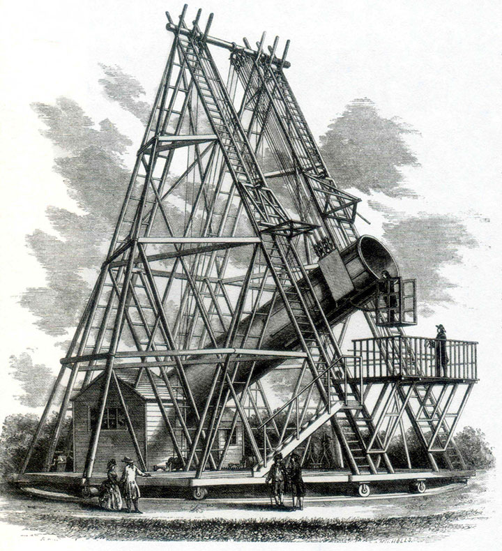 威廉·赫歇尔正是用图中的望远镜观看夜空星体的运动。 |
