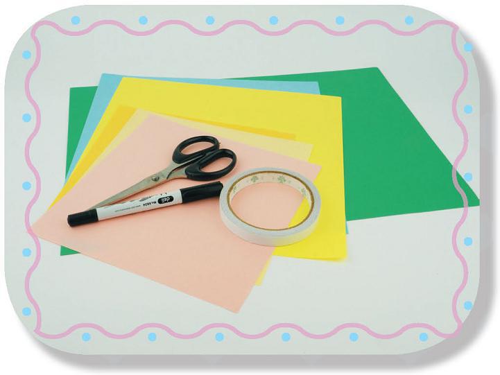 绿色卡纸、彩色手工纸、剪刀、勾线笔、双面胶