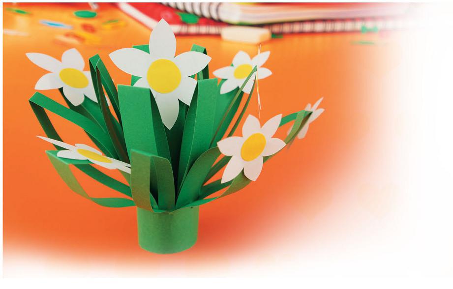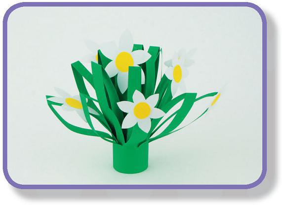 9.将花朵粘贴在叶子上,漂亮的水仙花就做好了。