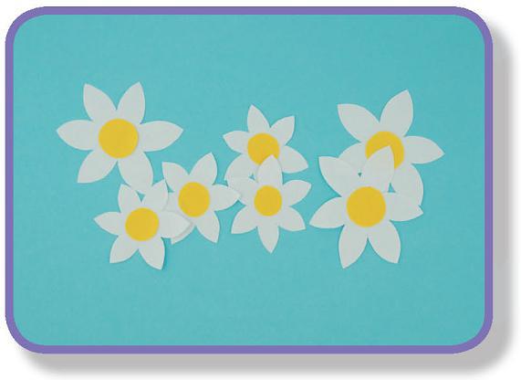 7.剪出一些大小不同的白色6瓣小花和黄色圆点。