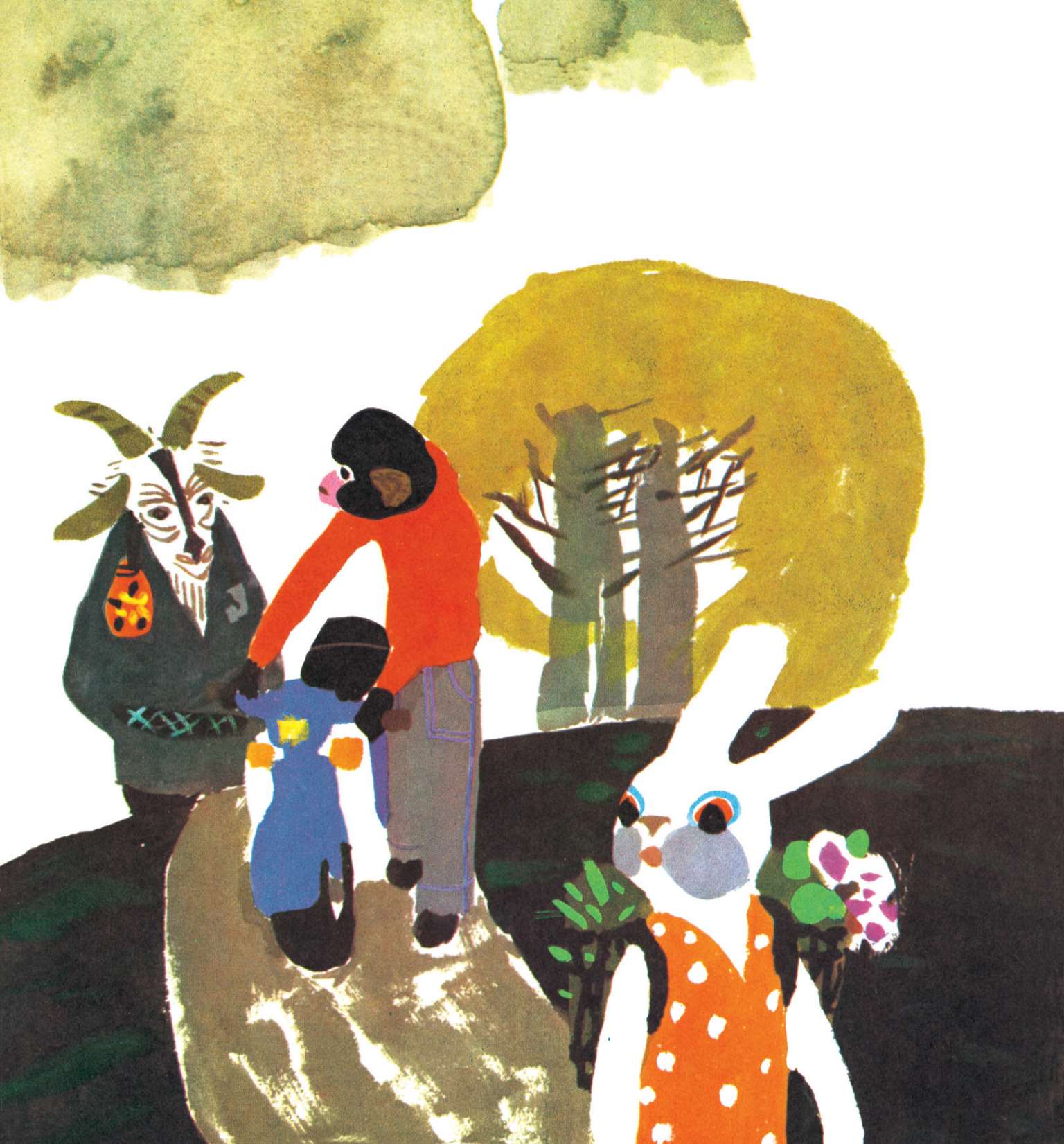 在树林里,他遇到了采药的小兔妹妹。小兔妹妹很热心,愿意带他去找。