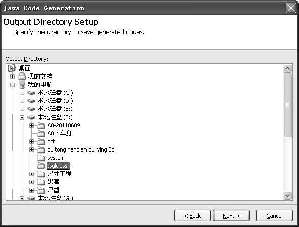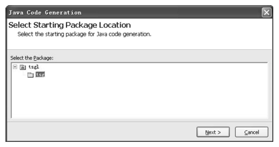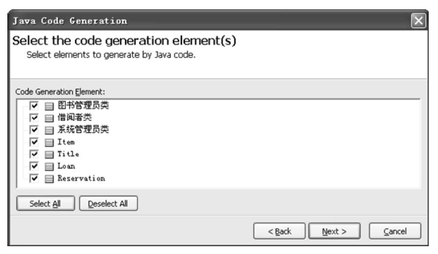 02 从“Java Code Generation”对话框中选择设计模块,如图3.23所示,单击 “ Next”。