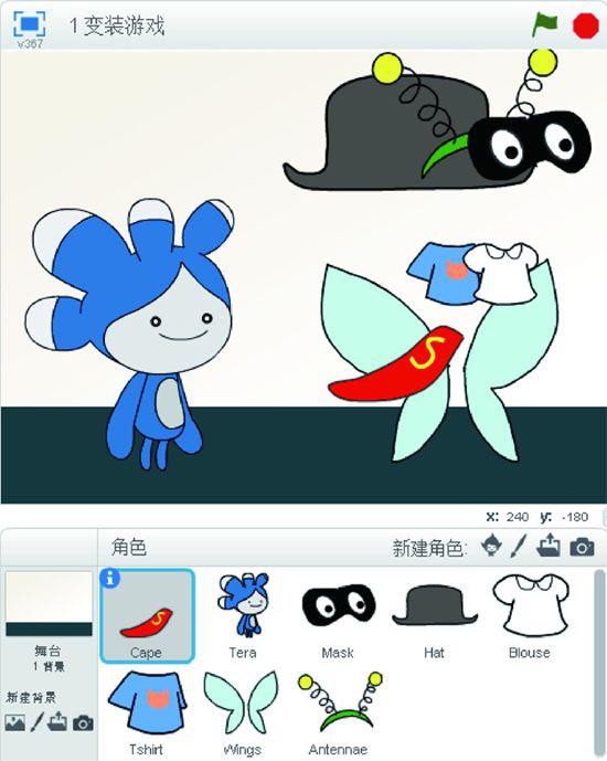 变装游戏是一个很简单的小游戏,为卡通角色绘制头饰和衣服,移动它们到角色Tera上,将Tera打扮起来,如图1.120所示。