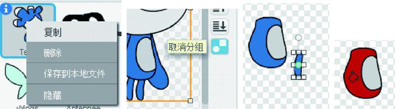 变装游戏中所有角色都是矢量图,下面就来练习一下矢量图的绘制方法和基本工具。首先来给Tera制作一幅最简单的矢量图片。首先将角色Tera复制成一个新角色,然后将角色取消分组,将其他部分选中按Delete键删除之后,使用