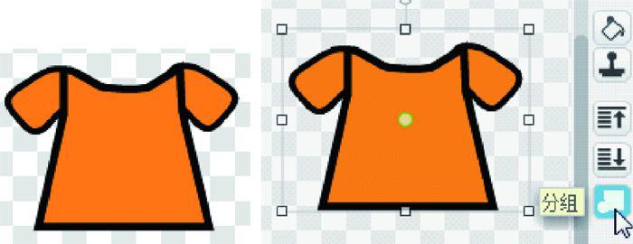 工具将另一只袖子反转,这样就完成了一件新的衣服。最后选中衣服的3个部分,单击分组按钮将衣服组合起来,再使用设置中心工具