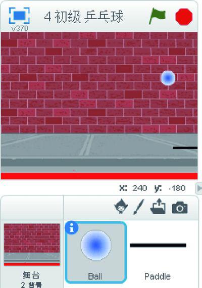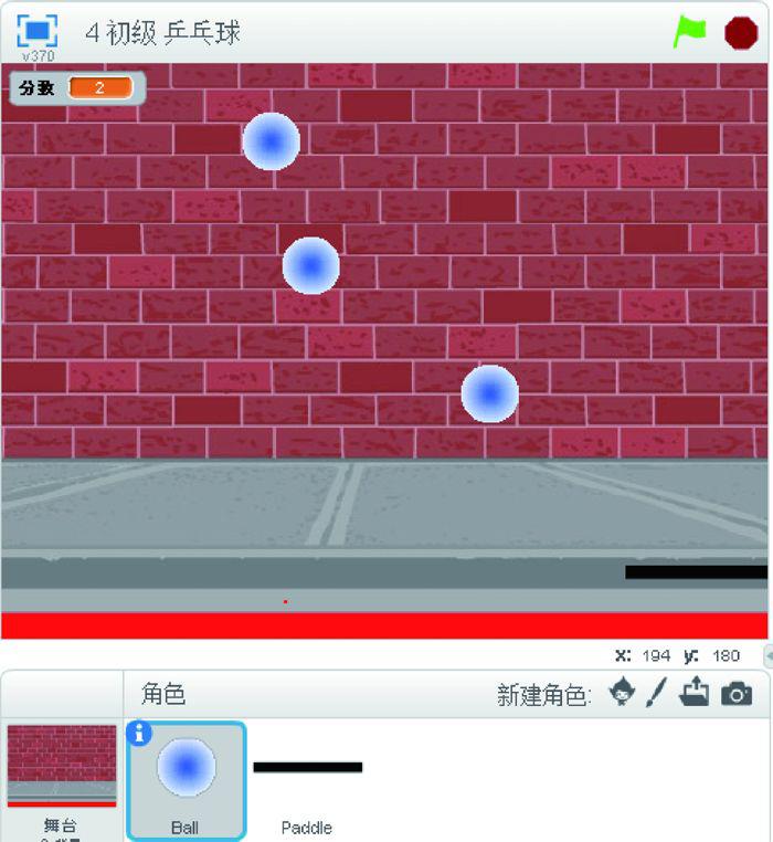 如果接到乒乓球后反弹,一个滑板受到鼠标的控制接乒乓球;如果没接到乒乓球,落到红颜色的地面上程序停止,如图1.135所示。