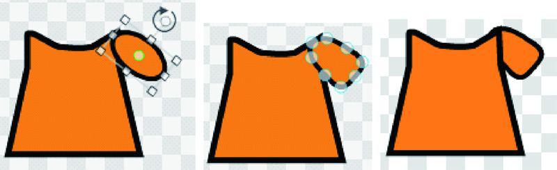 接下来使用椭圆工具制作一个袖子,并且旋转它到一个合适的角度与衣服配合起来,并用变形工具修改形状,最后使用层工具