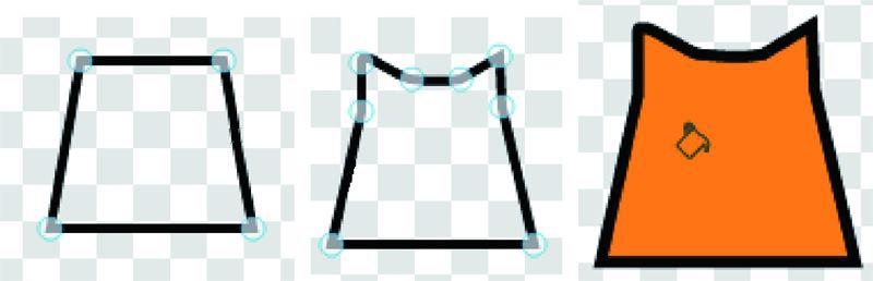 ,然后使用变形工具将其改变为一个梯形,这样就完成了衣服的外框,如图1.124所示。使用曲线工具在直线处单击可以添加一个新的曲线编辑点,改变衣服的形状。最后使用填色工具上色。