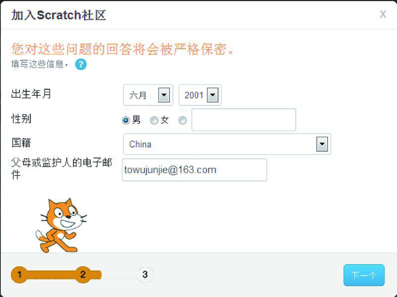 单击“下一个”按钮后,填写个人信息,如图1.9所示。其中towujunjie@163.com是笔者的电子邮箱。