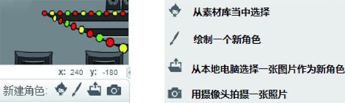 接下来再添加一个新角色。在舞台的左下角可以添加角色,添加新角色的方法有很多,如图1.22所示。