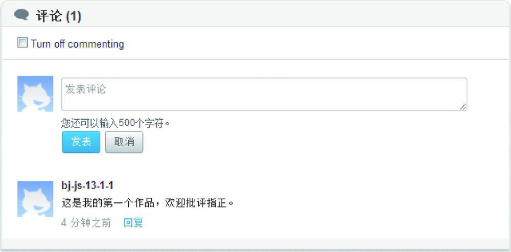 这里稍作说明的是,每个作品下方都有评论窗口,如图1.32所示。注册后的用户都可以对任何作品进行评论,程序的原始作者也可以通过勾选