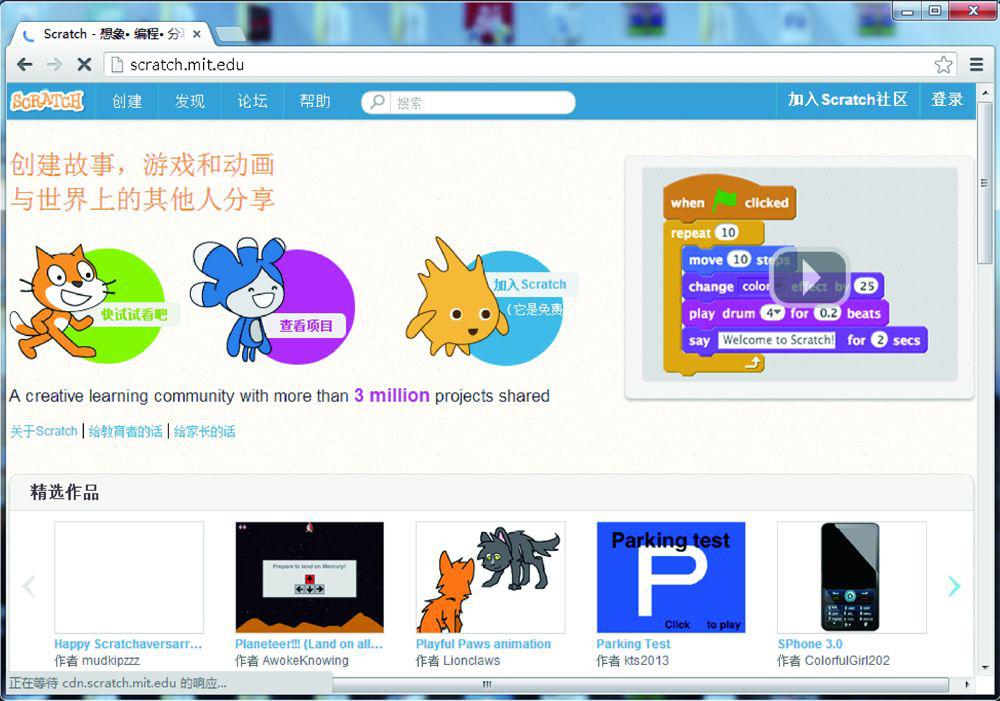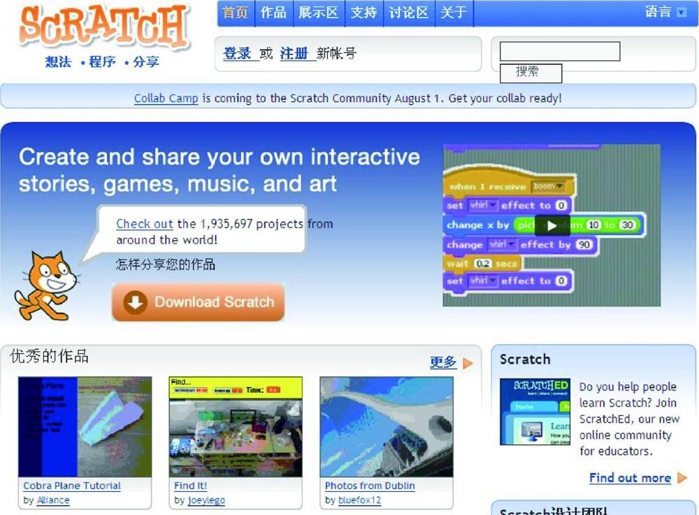 图1.6 Scratch 2.0的网站界面
