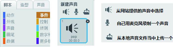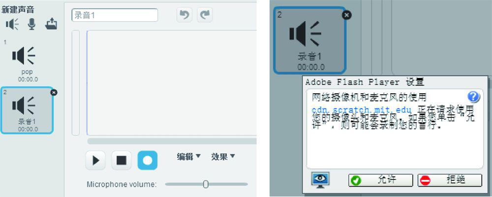 下面要让这个女生给小猫的舞蹈伴唱,新建声音的方法有很多。我们选择用麦克风录制一段声音,如图1.24所示。
