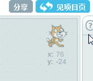 在全屏显示之后,帮助菜单隐藏了,单击图1.21所示的“?”,可以将帮助菜单调回。小猫下方显示了当前小猫的位置坐标。
