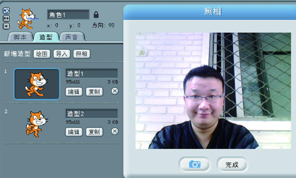 在Scratch 1.4中,每个造型都允许通过照相的方式获取新造型,如图1.36所示。