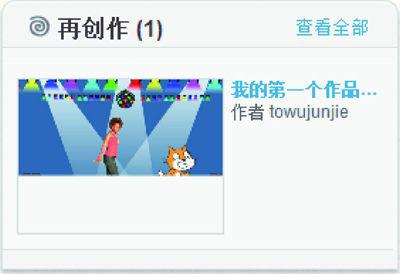 但是在Scratch 2.0中,若用户towujunjie访问了用户bj-js-13-1-1的作品,选择“再创作”就可以在上面作品的基础上进行改进,如图1.42和图1.43所示。