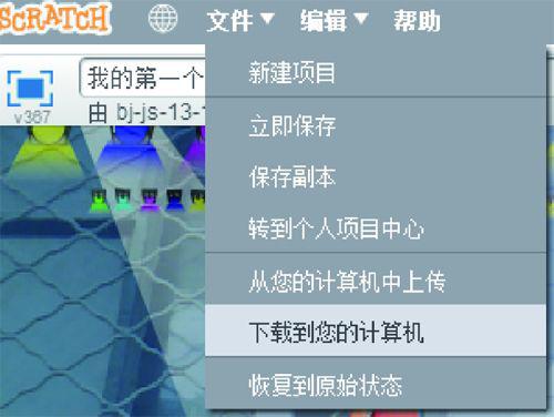 在Scratch 1.4中,可以将作品上传到Scratch网站中;在Scratch 2.0的网页版中,本身就是在Scratch网站中编辑,无须上传。在网站上的作品可以单击“文件”菜单中的“下载到您的计算机”命令,把作品保存到本地,但是Scratch 2.0的程序无法用Scratch 1.4打开,如图1.40所示。