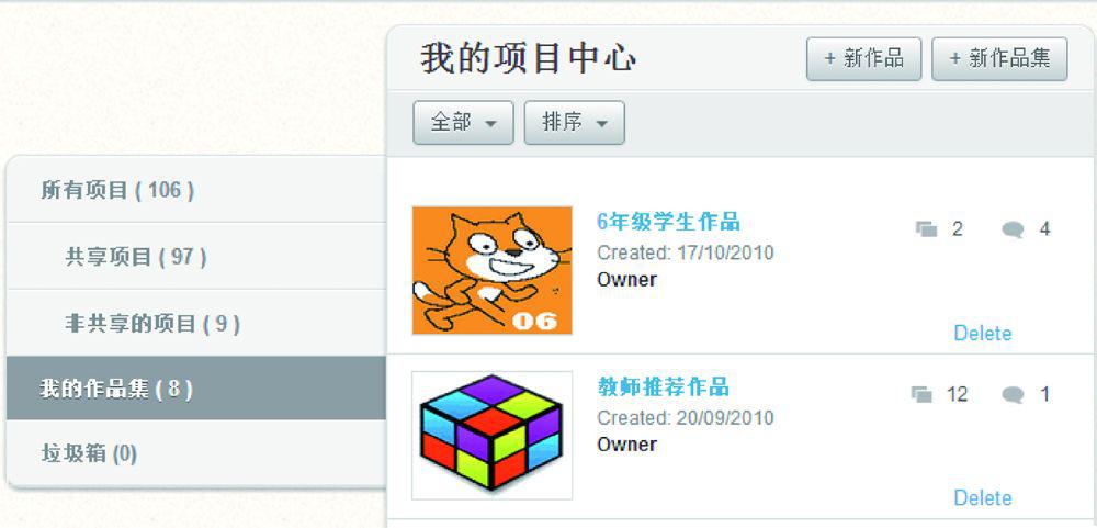 (2)作品集:http://scratch.mit.edu/studios/之后连接作品集编号。