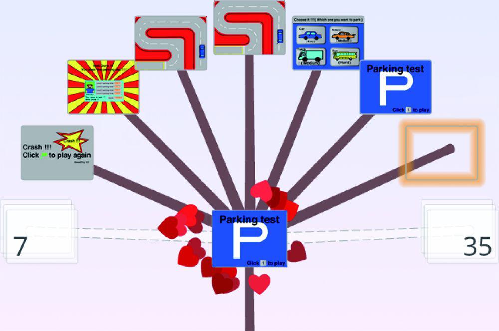 如果一个作品被再创作的次数很多,网站会生成一棵“创作树”,显示这个原始版本逐渐改善的情况,单击