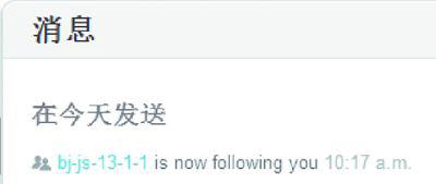 如果关注了其他人,比如用户bj-js-13-1-1关注了用户towujunjie,在用户towujunjie的消息栏中会出现别人关注的信息,如图1.76所示。