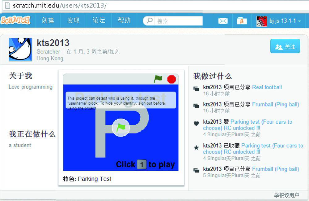 (3)用户:http://scratch.mit.edu/users/之后连接用户名。