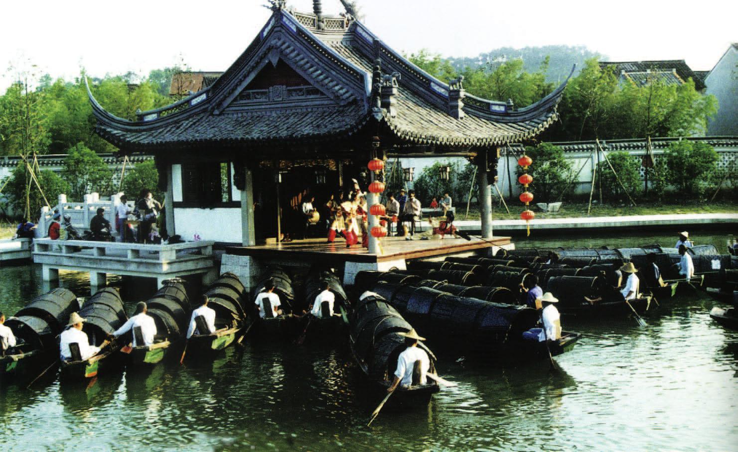 市镇中的交通工具无疑以舟船最为重要。《淮南子·齐俗训》中“胡人便于马,越人便于舟”,《淮南子·主术训》中“汤武圣主也,而不能与越人舟令舟而浮于江湖”等的记载均深浅不一地感叹吴越人善驾“舟令舟小船”等出没江河之中,汤武虽圣明,但不习水舟,亦无可奈何。无论是《吴越春秋》中形容古吴越人“以船为家,以楫为马”,还是《春秋大事表》中吴人“不能一日而废舟楫之用”,南船北马中的舟船对于吴越的经济、社会和聚落发展的重要性是毋庸置疑的,对于市镇人群的生产和出行、商品交易和流通等显示出多重的功能和意义。南宋杨万里卜居新市镇时,曾讴歌了船舟和人家的密切关联,及由此而生的独特地理景观和生活视相:“人家两岸柳阴边,出得门来便入船,不是全无最佳处,何窗何户不清妍。”明末绍兴人张岱在《陶庵梦忆》卷8中记叙邑里“楼”与“船”时互名而畛域不清的趣闻:“家大人(张岱父亲)造楼,船之;造船,楼之。故里中人谓船楼,谓楼船,颠倒之不置。”从中亦可以窥见越人视舟如家(楼)、楼(宅)庶几为船的“模糊性”。从余姚河姆渡、萧山跨湖桥、常州淹城和苏州绰墩山等遗址中独木舟的发掘和出土文物看,用整段树木凿成的独木舟意味着江南造船、航运的历史可上溯至5000~7000余年,也标志着早于殷商数千年的刳木为舟的行为本身在激水穿浪的同时也已经战胜了内心世界滋生的畏葸和恐惧。以舟代步和助步,不仅使活动半径和视野得以迅速扩大,也扩展了生存空间和经济能量。其意义还在于,它以运动的姿态和开拓性的象征,与囿守一方的内陆黄色文明形成了比照;另一方面,舟船本身也是手工和制造业的大宗产品。舟船业的兴盛对于市镇的成长功莫大焉。从后周显德五年(958年)订定的《漕运水程制》看,水运远胜于陆运。按重量单位平均,水运运费颇为低廉且人力物力消耗减省。伴随水道商业网络的形成,“凡东南郡邑,无不迎水,故天下货利,舟楫居多” [16] ,出现了武后长安二年(702年)崔融所形容“天下诸津,舟航所聚”、“千舳万艘,交货往来”的繁荣景象。如蚕丝、粮市和吴江市第二大镇市的震泽通过頔塘河和通泰河两条重要的市河与周边城市及村镇有着千丝万缕的经济联系和络绎不绝的人际往来,素为太湖平原上最为繁忙的水运码头之一,河道里呈现樯桅林立,航船、栈船、载船三船争流,舟楫塞港的繁盛景象。
