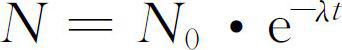 式中,λ为放射性衰变的概率,称为衰变常数。在时间0到t内对上式积分,得到
