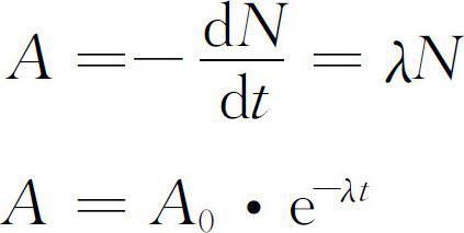 式中,A 0 是t=0时的放射性活度。放射性活度的SI单位是贝可,用Bq表示,1Bq相当于每秒1次衰变: